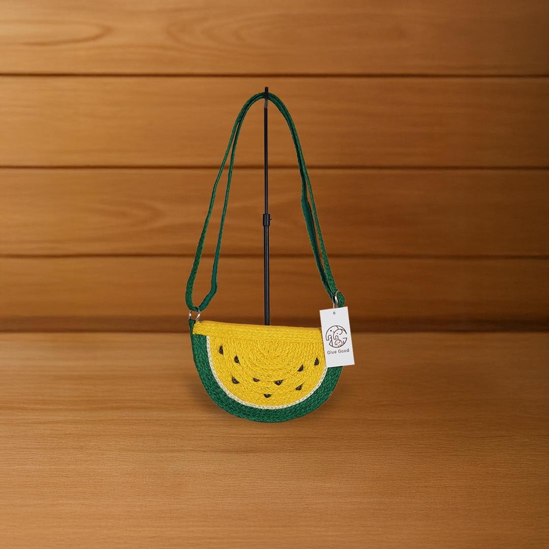 This adorable watermelon-shaped sling bag is crafted from sustainable pineapple hemp fiber. Featuring bold red, yellow, and green tones, it captures a playful, refreshing look. Durable, eco-friendly, and lightweight—perfect for adding a cheerful touch to your everyday style.