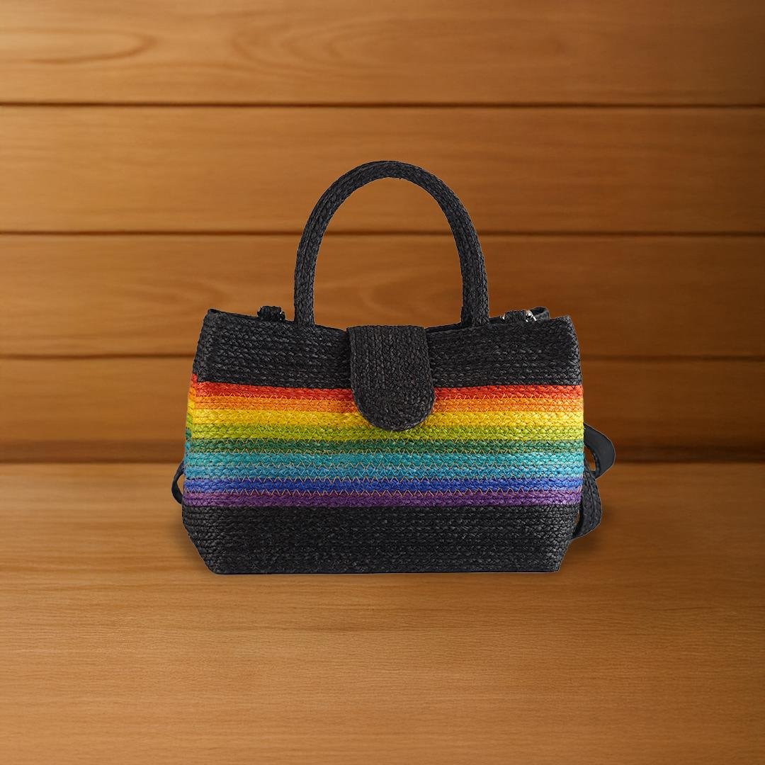 This compact fashion bag is handwoven from natural Sansevieria fiber, featuring a short handle and magnetic flap closure for easy use. Its colorful patterns—classic stripes to vibrant rainbow tones—add a modern flair. Ideal for daily essentials, blending natural charm with stylish design.