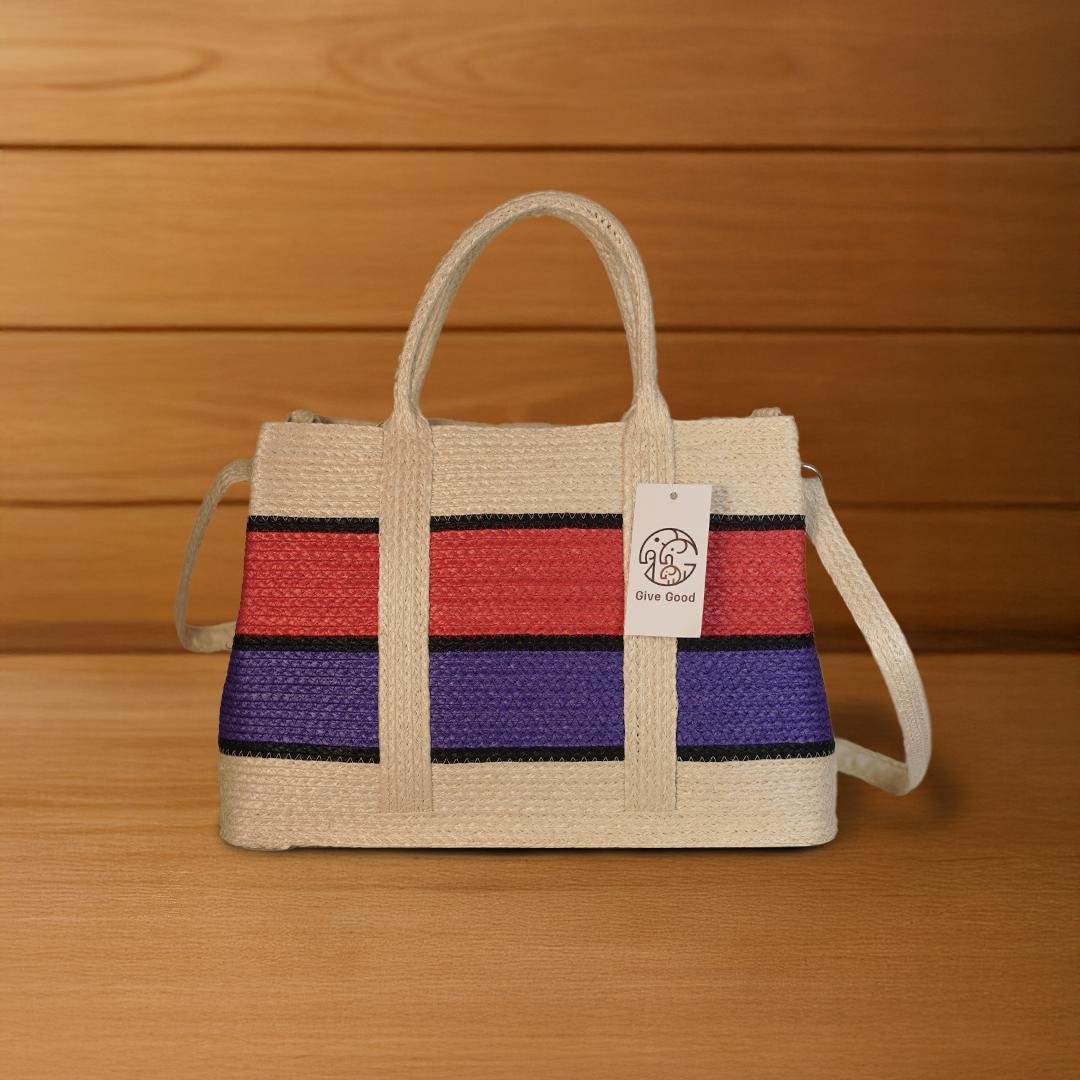 Crafted from natural Sansevieria fiber, this structured square-shaped handbag features striking horizontal stripes in modern tones. Durable, stylish, and perfect for everyday use or as a chic fashion accessory.