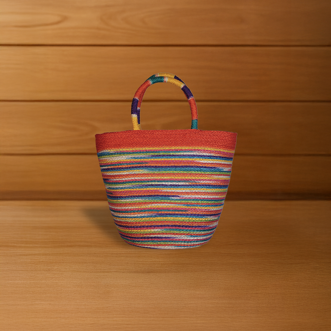 Crafted from natural Sansevieria fiber, this vibrant rainbow-handle bag features a spacious shape and eye-catching multicolor design. Ideal for daily use, casual outings, or as a unique fashion statement.