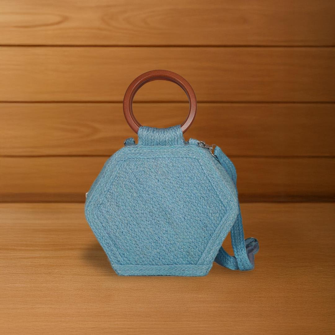 Handwoven from natural Sansevieria fiber, this hexagon-shaped handbag features a modern geometric design with a classic touch from round wooden handles. A unique blend of tradition and style, perfect for daily use or special occasions.