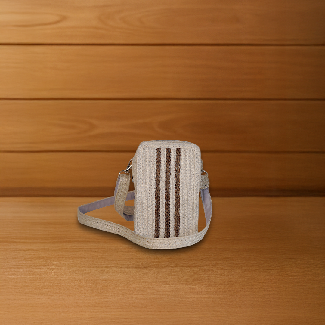 This small box-shaped crossbody bag is crafted from natural sansevieria fiber. Featuring a long strap and distinctive local patterns, it combines simplicity with cultural charm — perfect for carrying daily essentials like your phone, wallet, or keys.