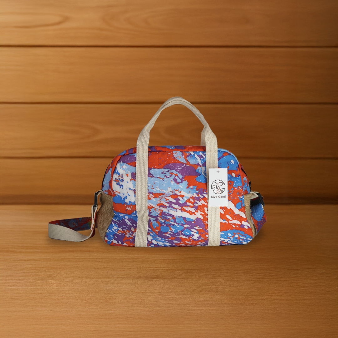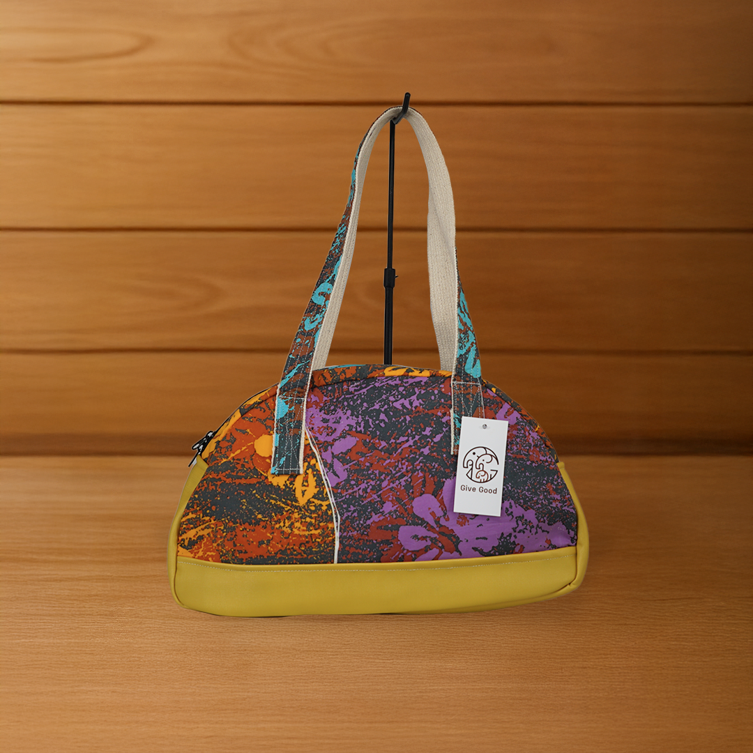A soft-curved handmade bag from Trang, featuring vibrant artistic dye patterns and natural materials like canvas or hemp. Durable yet modern, it's perfect for daily use, short trips, or weekend getaways.