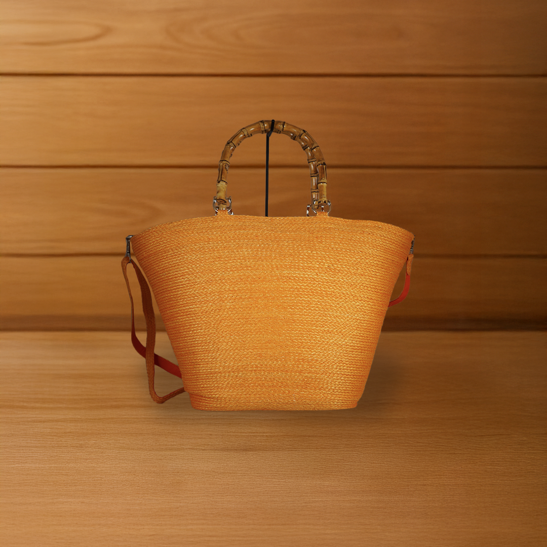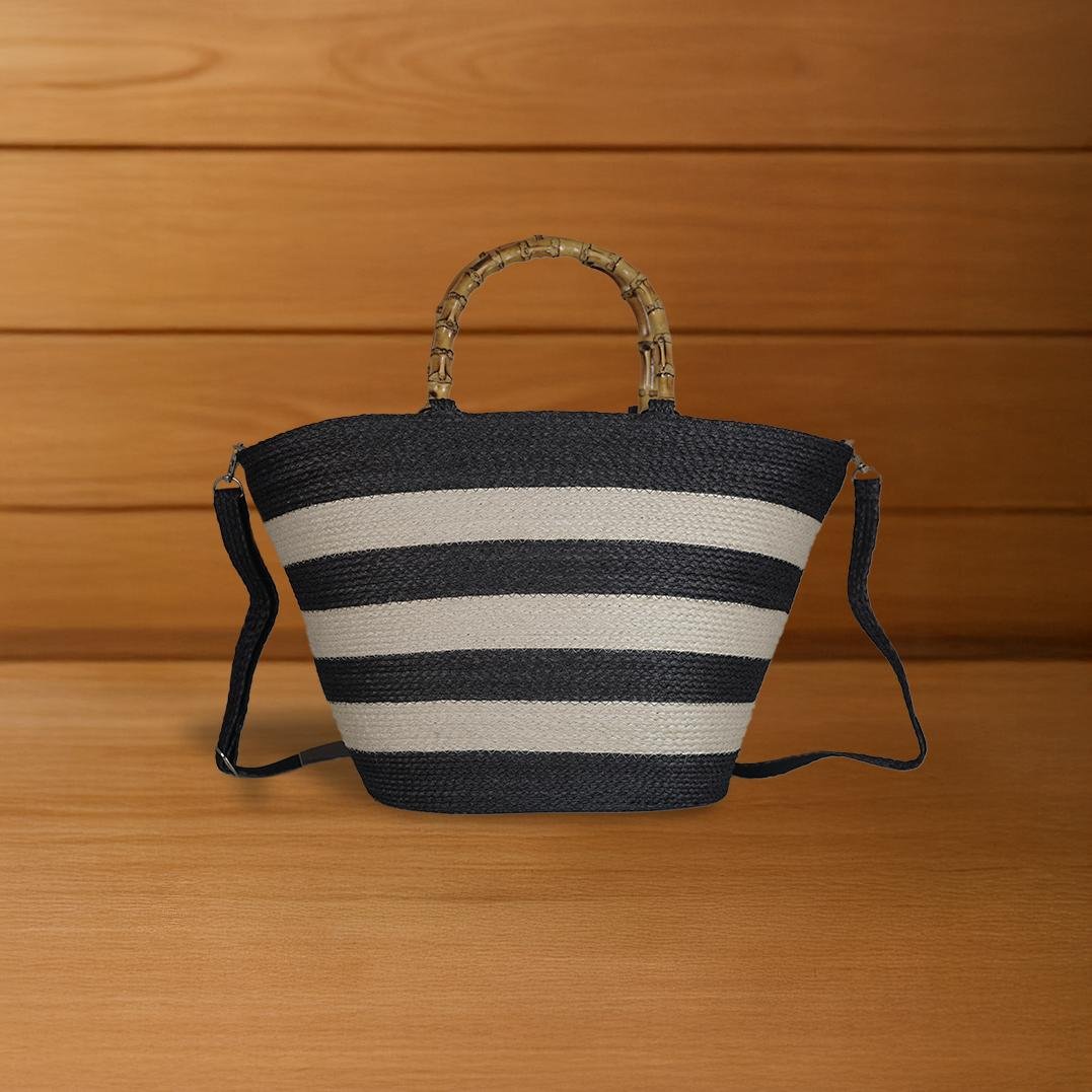 This Louis-style handbag is delicately handwoven from natural Sansevieria fiber, featuring a soft rustic texture and horizontal stripe patterns for added character. Finished with rope-wrapped wooden handles in a Japanese-inspired design, it beautifully blends traditional charm with modern style—perfect for relaxed days or as a tropical fashion statement.