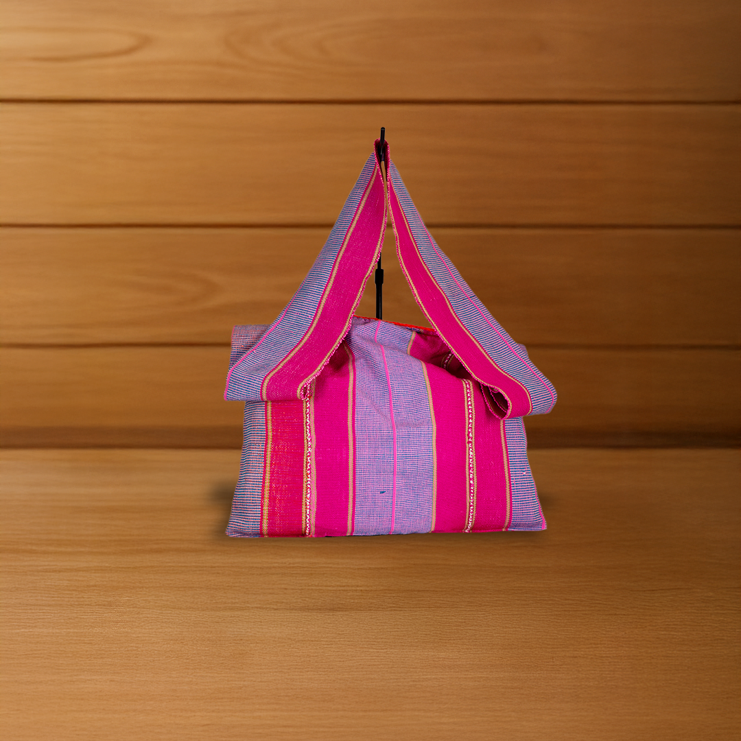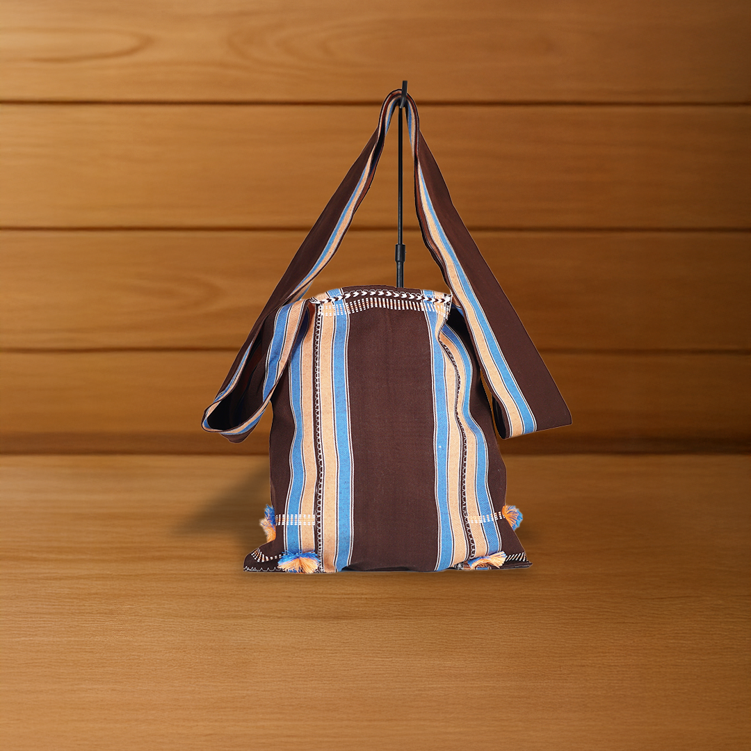 This handwoven shoulder bag showcases the vibrant textiles of Chiang Rai's ethnic communities, including the Hmong, Yao, and Lahu. Featuring a long, seamless strap and colorful tribal patterns, it’s perfect for daily essentials, books, or travel use. A culturally rich accessory that blends tradition with practical style.