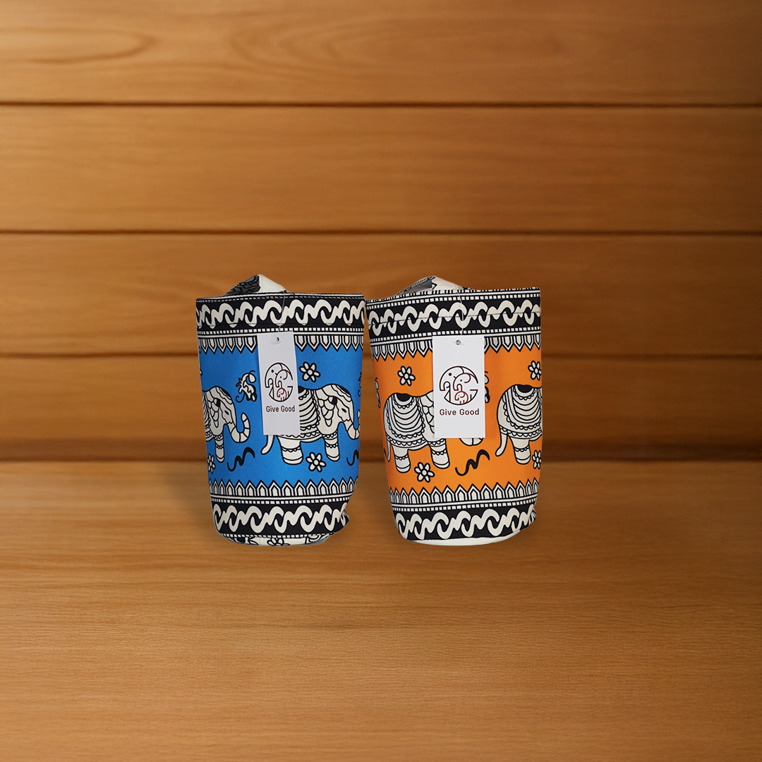 Elephant-Print Fabric Cup Holder – Thai Style Meets Everyday Convenience